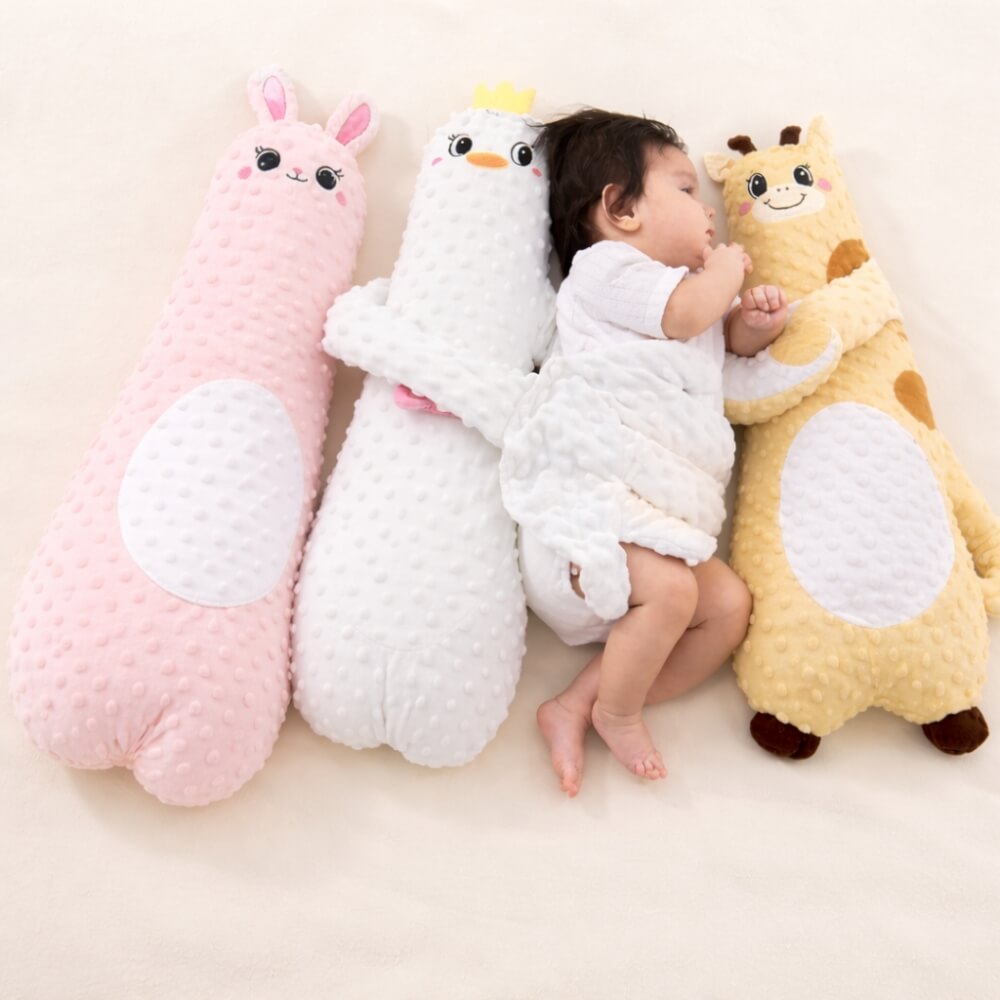 Plush fabric with cozy filling feels gentle and safe on delicate skin.