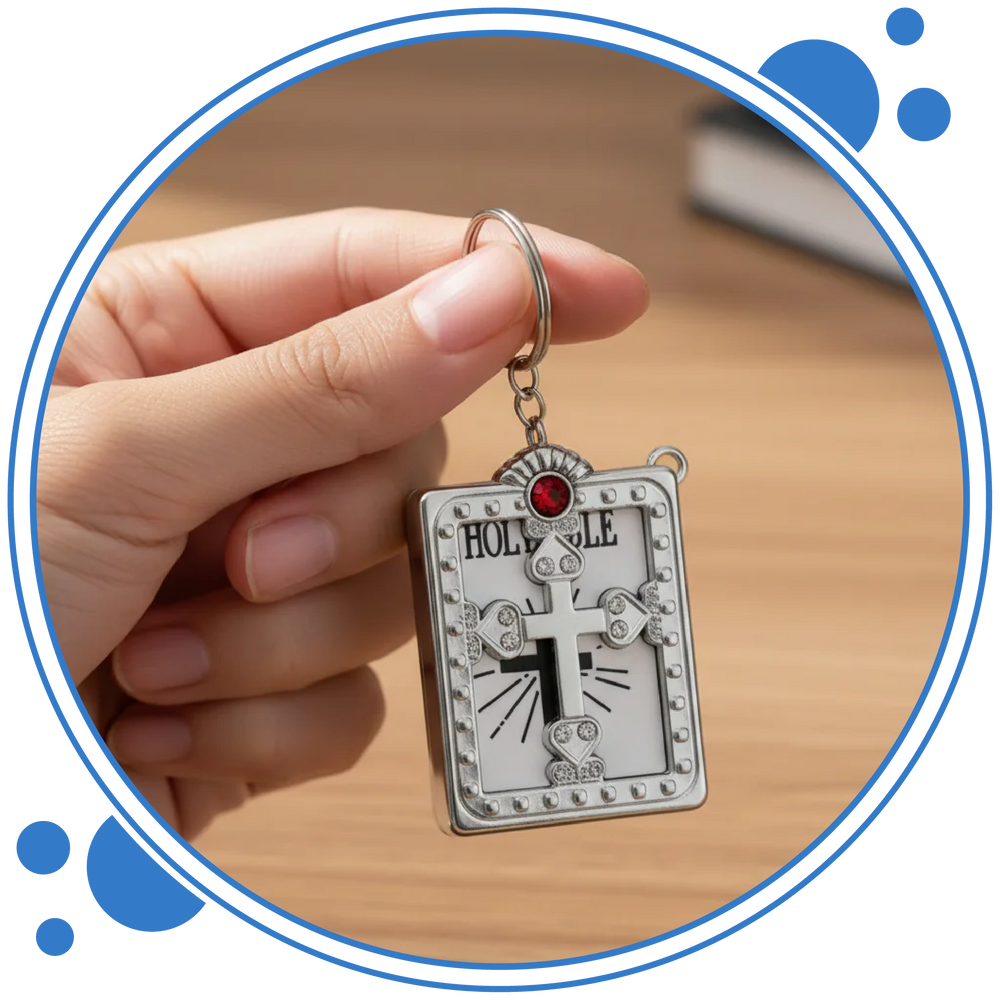 Carry a powerful symbol of hope and devotion with you every day. This keychain keeps your spiritual connection close, no matter where life takes you.